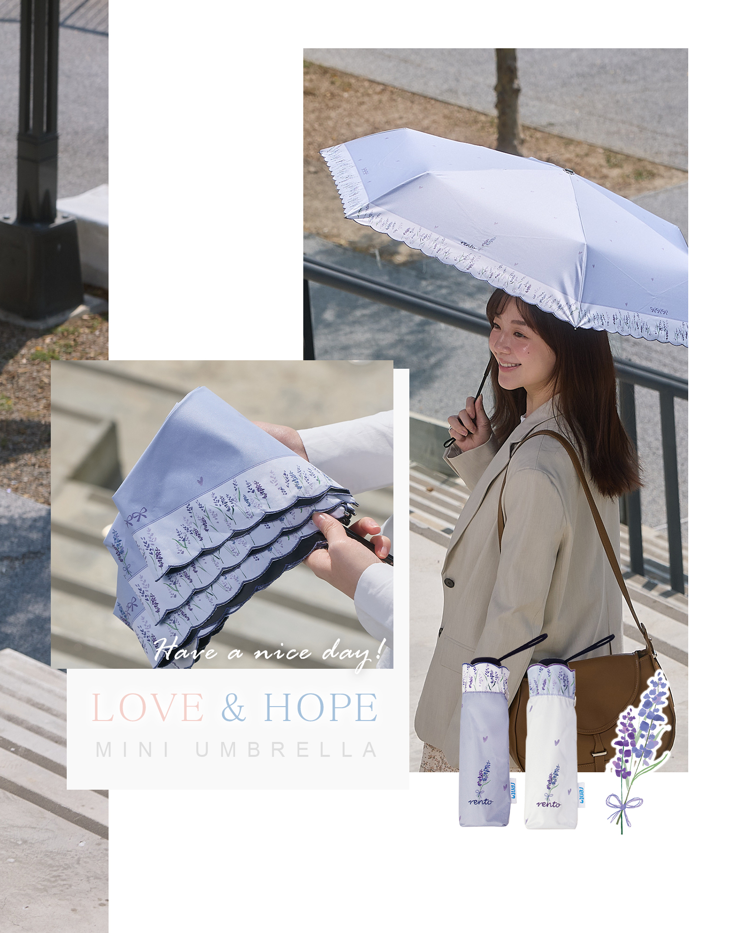 MINI UMBRELLA¥4,950 (税込) SIZE親骨の長さ 50cm直径 90cm全長 53cm QUALITY生地 ポリエステル100%裏面ポリウレタンコーティング原産地 中国製 品番 |4106001 ラベ続きを読む “浪漫ラベンダー”