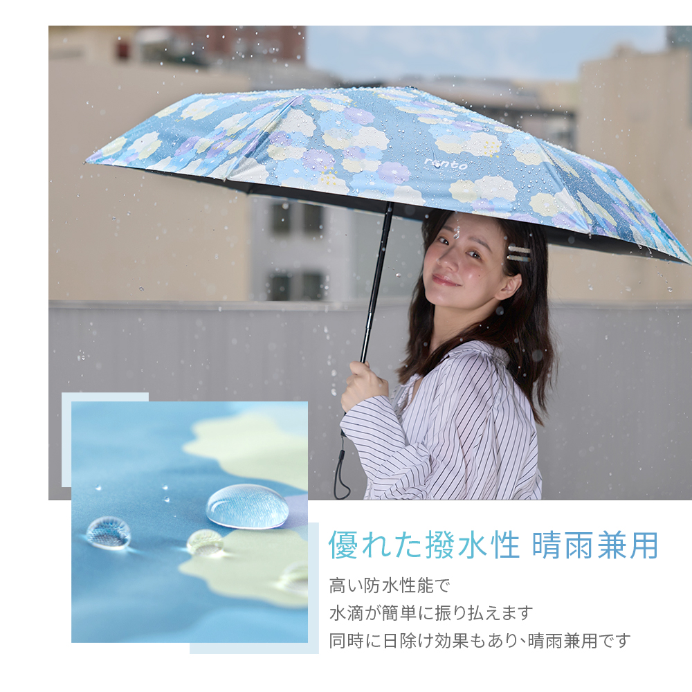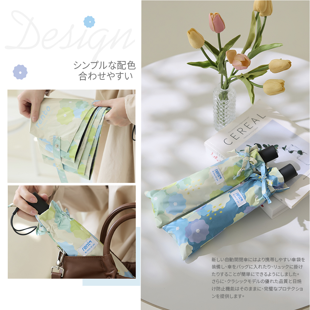 蒔花の園 AUTO UMBRELLA¥5,800 (税込) SIZE親骨の長さ 58cm直径 105cm全長 61cm QUALITY生地 ポリエステル100%裏面ポリウレタンコーティング原産地 中国製 品番 |3305001 フィヨルドブルー002 グリーン