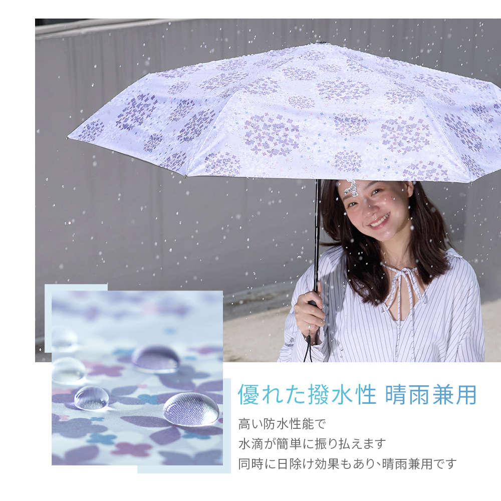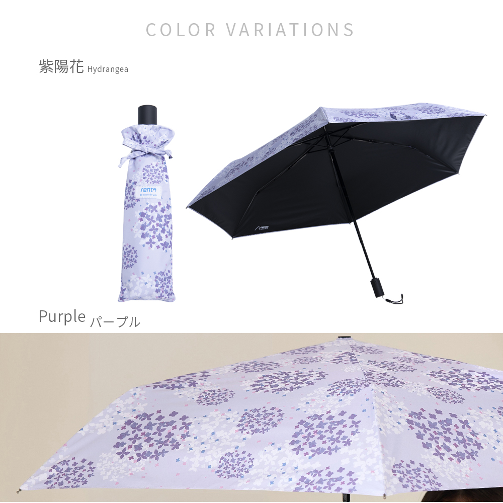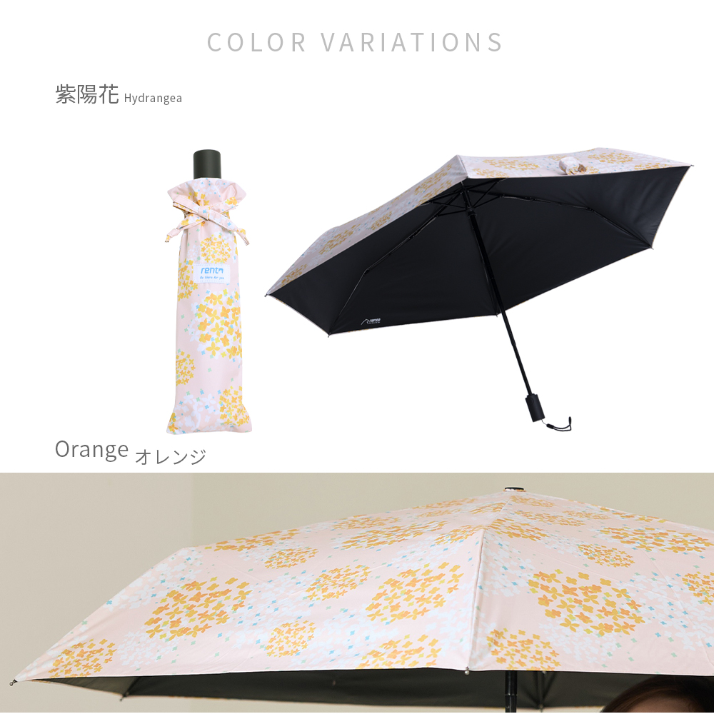 紫陽花 AUTO UMBRELLA¥5,800 (税込) SIZE親骨の長さ 58cm直径 105cm全長 61cm QUALITY生地 ポリエステル100%裏面ポリウレタンコーティング原産地 中国製 品番 |3306001 オレンジ002 パープル