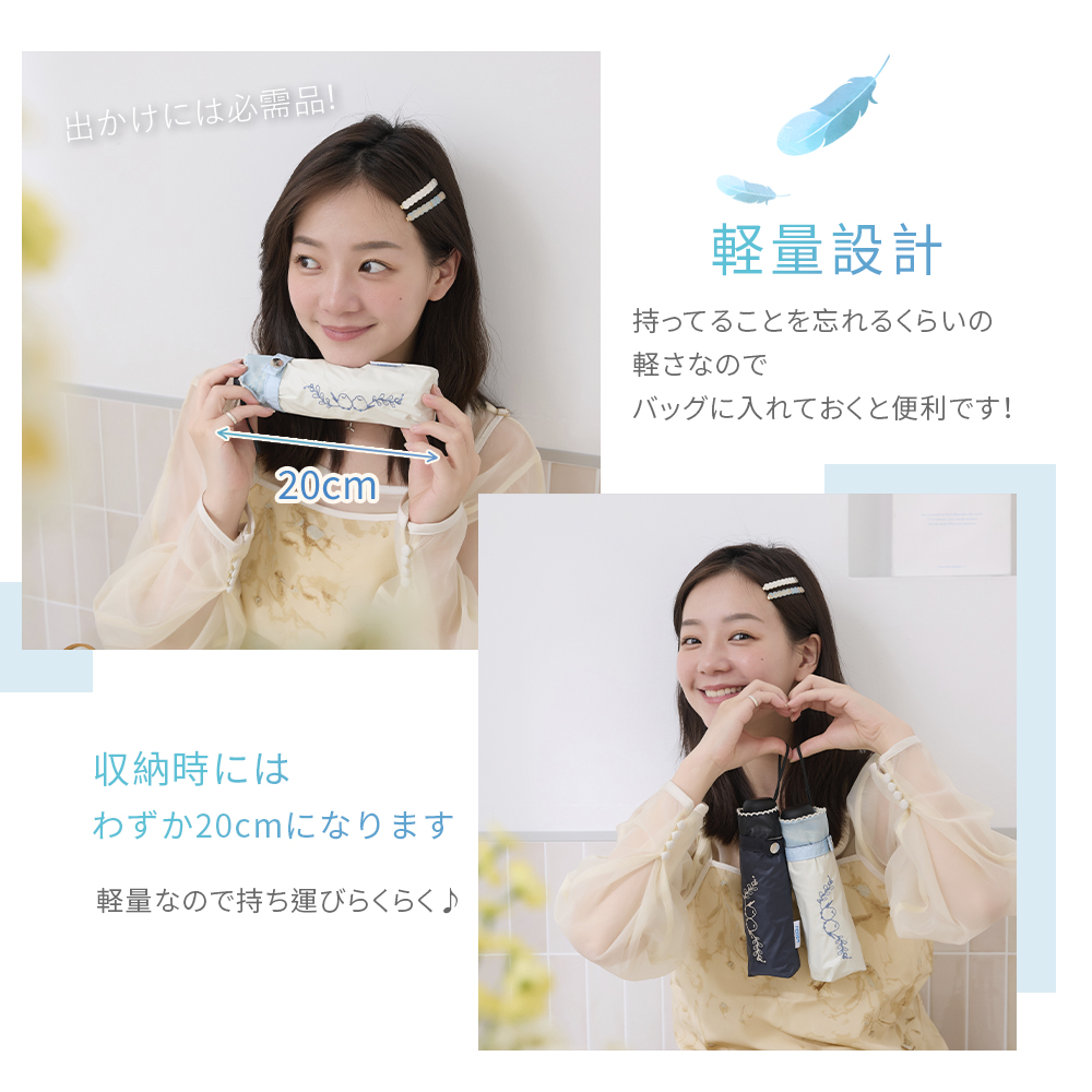 シマエナガ 刺繍 MINI UMBRELLA¥4,950 (税込) SIZE親骨の長さ 50cm直径 90cm全長 53cm QUALITY生地 ポリエステル100%裏面ポリウレタンコーティング原産地 中国製 品番 |4104001 水色002 绀色